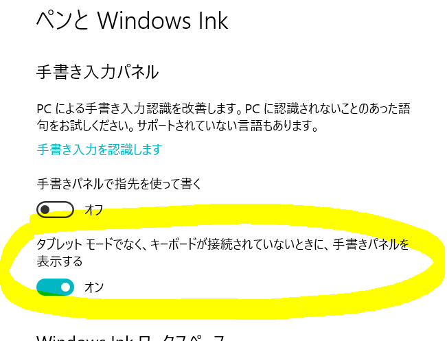 すると、今まで無かった手書きウィンドウが出現。